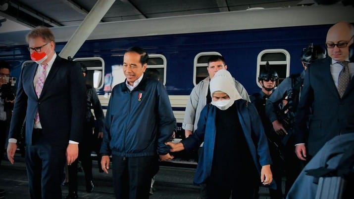 Mengutip keterangan resmi Sekretariat Presiden, Rabu (29/6/2022), Jokowi dan Ibu Negara Iriana Jokowi tiba di Peron 1 Stasiun Central Kyiv, Ukraina sekitar pukul 08.50 waktu setempat.