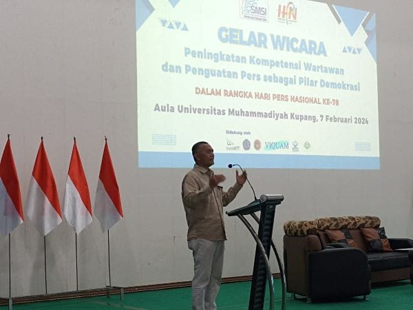 Dalam sambutannya, Zainul Wula, mengucapkan terima kasih kepada SMSI yang merupakan organisasi konstituen dewan Pers di NTT yang menggelar perayaan Hari Pers Nasional 2024 di Aula Universitas Muhammadiyah Kupang.