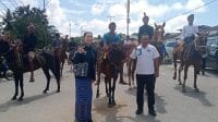 Calon Gubernur NTT Simon Petrus Kamlasi Dan Bunda Julie Sutrisno Laiskodat Dijemput Pasukan Berkuda Di Sumba Barat